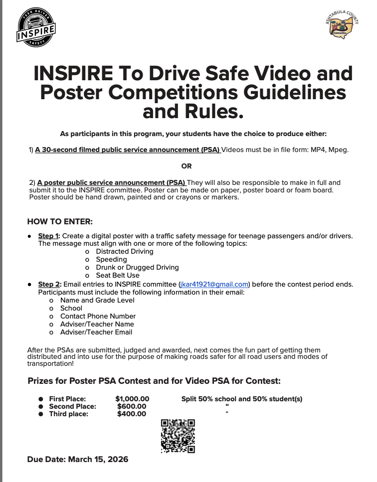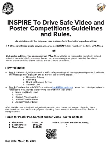 2026 INSPIRE TRAFFIC SAFETY POSTER & 30 SECOND VIDEO CONTEST